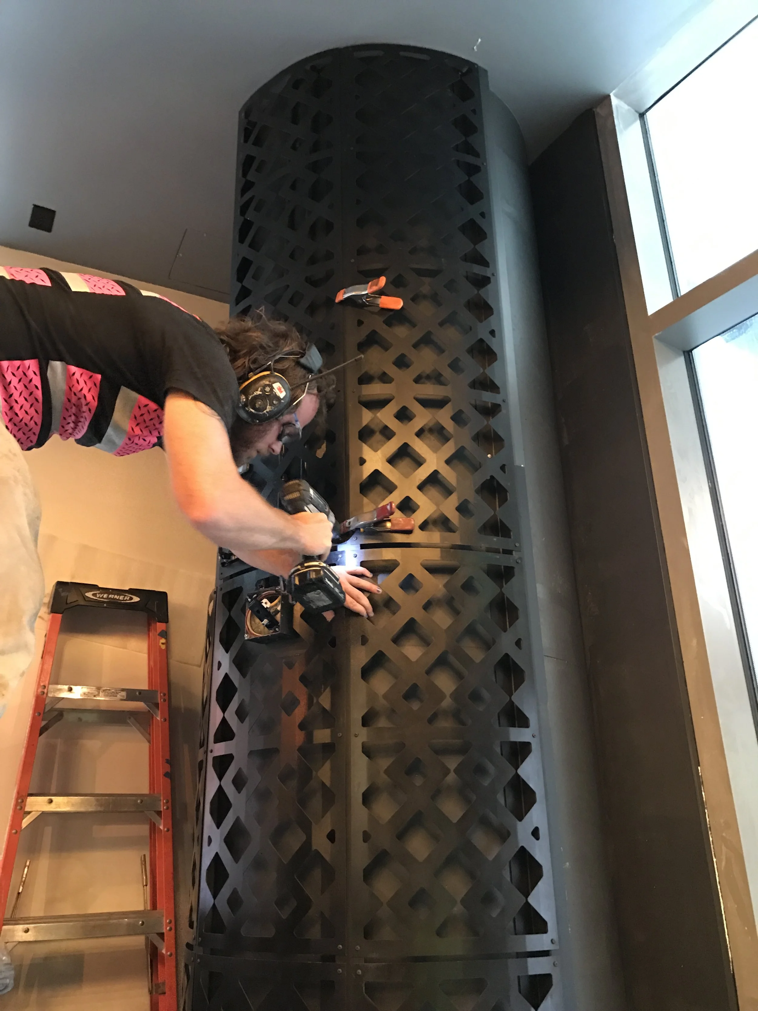 Developed a unique design and engineered a method for wrapping structural cement columns at Central Bar in Bellevue. Took an active role in every phase, from coordinating metal laser cutting and bending metal on the press brake to overseeing the installation. Ensured each step aligned with the design vision for a polished and cohesive final result.